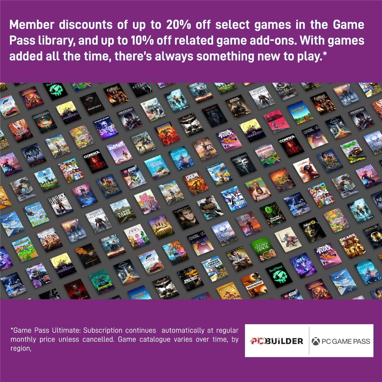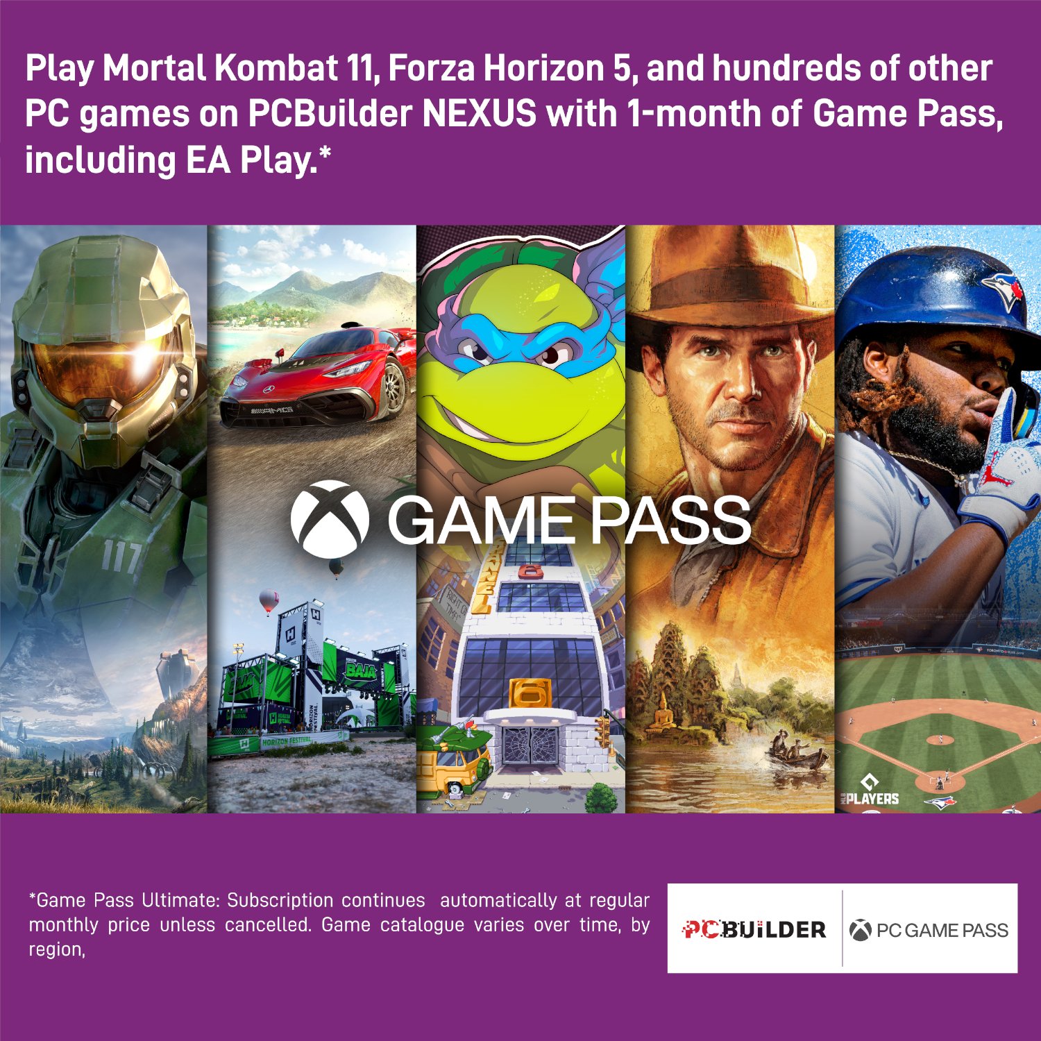 - Play over 100 high-quality PC games like Halo Infinite, Forza Horizon 5 and Teenage Mutant Ninja Turtles: Shredder’s Revenge with your new build and one month of PC Game Pass including EA Play. With new games being added all the time, there’s always something new to play from day one.
