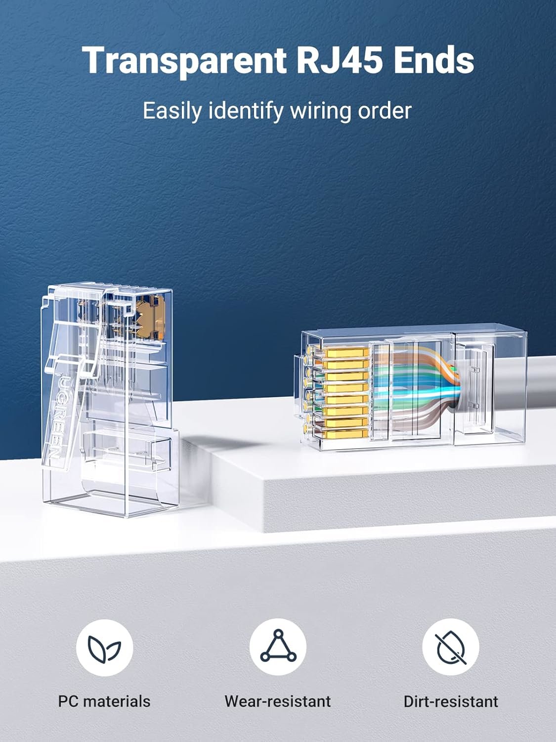 - UGreen Cat6 RJ45 Modular Plugs (50 Pieces)–Transparent with Gold Contacts